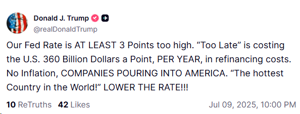 特朗普发文抱怨利率“至少高了3个百分点”,并计划提前设美联储“影子主席”来推动降息。然而,下一任美联储主席无论是谁都已然存在信誉问题。